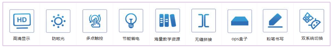 2、其功能涵蓋了觸控互動、多媒體教學(xué)和粉筆書寫 ,雙系統(tǒng)一鍵切換 ,一鍵開關(guān)機。