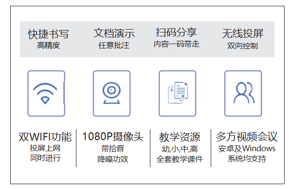 適用于會議室、報告廳、展廳、指揮監(jiān)控中心、辦公樓大堂等應(yīng)用場景,擺脫空間束縛。配備集電腦、麥克風(fēng)、觸控屏等功能于一體的智能講臺,滿足各種環(huán)境下的演講及同步展示需求。